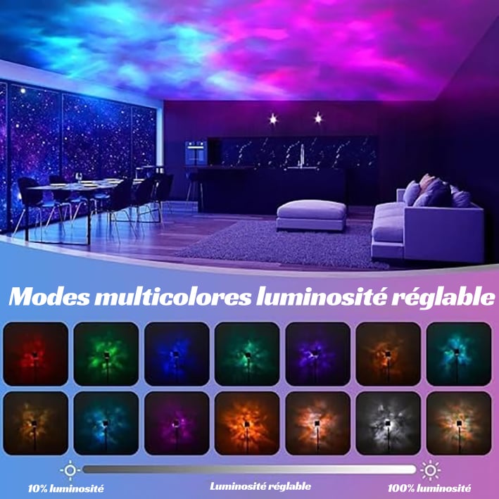 Admirez les motifs envoûtants des aurores boréales danser sur vos murs, créant une atmosphère sereine et magique qui transforme n'importe quelle pièce en un paradis céleste, idéal pour la détente et de doux rêves. 💫