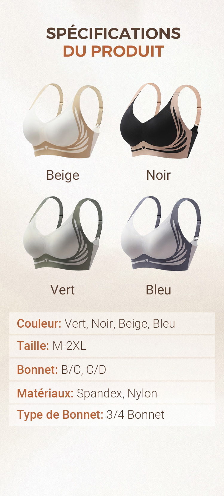 Soutien-gorge push-up sans armature anti-relâchement et liftant
