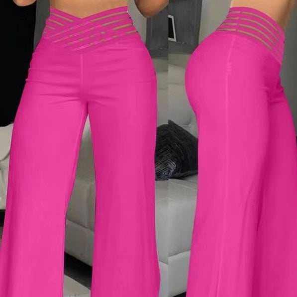 Pantalon décontracté pour femmes à taille haute et jambes larges